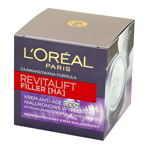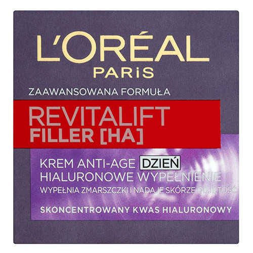 Revitalift FILLER [HA] by L’Oréal. Anti-aging face cream. Ideal for everyday use. The product makes the skin firmer and smoother everyday. It has a unique formula enriched with hyaluronic acid and Fibroxyl that gradually increase the volume of the skin. It has a soft texture that spreads easily. Dermatologically tested.