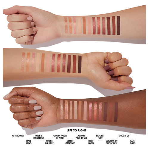פלטה המכילה 12 אבקות עם פיגמנט אינטנסיבי בגימורים שונים: מט, מבריק ומטאלי. צלליות בעלות נוסחה עמידה לאורך שעות שלא מתפוררת במהלך היישום. צבעים חמים בגווני חום וורוד המאפשרים ליצור איפור לכל אירוע.