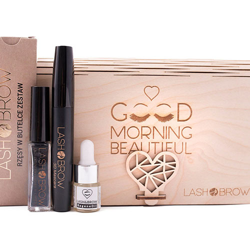 מארז טיפוח ואיפור לריסים באריזת עץ LashBrow Gift set of eye care