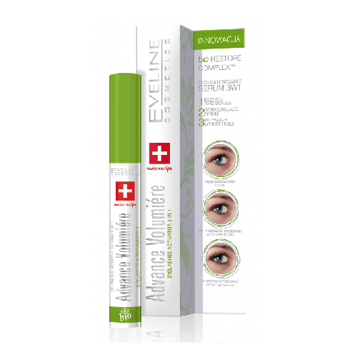 Advance Volumiere Eyelash Concentraced Serine 3in1 by EVELINE. Eyelash serum. In an innovative way, it combines the properties of rebuilding, activating growth and caring. Created on the basis of bio RESTORE COMPLEX , it deeply regenerates the hair structure while rebuilding it and protecting it. In addition, it contains a beneficial hyaluronic acid and D panthenol, which have a moisturizing, elasticizing and revitalizing effect on eyelashes.