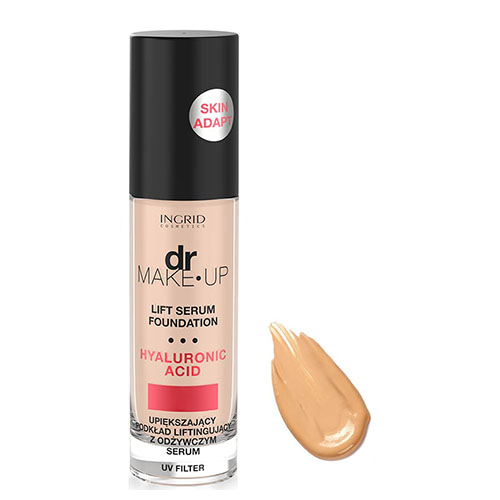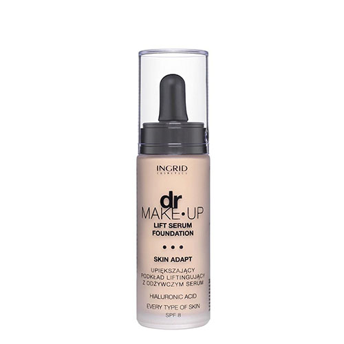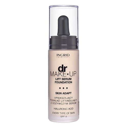 DR MAKE-UP – Lift Serum Foundation – Skin Adapt by INGRID. A combination of nutritious serum and lifting foundation. The innovative formula comprises hyaluronic acid, thus perfectly moistens and prevents from harmful external factors. The product optically reduces wrinkles and guarantees strong opacity and long-lasting matting. Contains SPF 8. Available in 5 colors that adjust to your skin tone.
