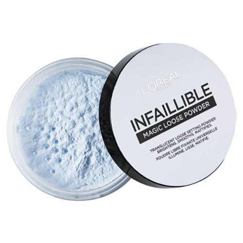 פודרה רופפת מקבעת שקופה INFAILLIBLE MAGIC LOOSE POWDER של לוריאל. יש לה מרקם בהיר וגוון כחול המפזר אור ומבהיר את גוון העור בצורה יפה. יחד עם זאת, היא מקבעת איפור לאורך זמן ומונעת הברקה לא רצויה של העור. הנוסחה הדקה והמיקרו גרעינית גורמת לקוסמטיקה להתמזג בקלות עם העור ועם מוצרי קוסמטיקה אחרים, מבלי להדגיש קמטים וקווים. לאחר המריחה, מראה העור מושלם, ללא ברק, והאיפור עמיד לכל היום.